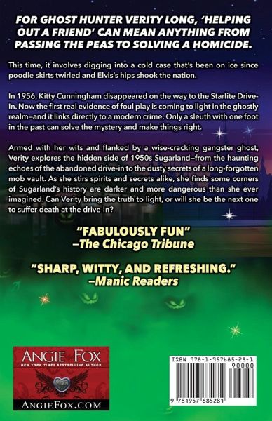 For ghost hunter Verity Long, 'helping out a friend' can mean anything from passing the peas to solving a homicide. This time, it involves digging into a cold case that's been on ice since poodle skirts twirled and Elvis's hips shook the nation. In 1956, Kitty Cunningham disappeared on the way to the Starlite Drive-In. Now the first real evidence of foul play is coming to light in the ghostly realm-and it links directly to a modern crime. Only a sleuth with one foot in the past can solve the mystery and make things right. Armed with her wits and flanked by a wise-cracking gangster ghost, Verity explores the hidden side of 1950s Sugarland-from the haunting echoes of the abandoned drive-in to the dusty secrets of a long-forgotten mob vault. As she stirs spirits and secrets alike, she finds some corners of Sugarland's history are darker and more dangerous than she ever imagined. Can Verity bring the truth to light, or will she be the next one to suffer death at the drive-in?