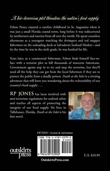 A bio-terrorism plot threatens the nation's food supply. Felton Ponce enjoyed a carefree childhood in St. Augustine when it was just a small Florida coastal town, long before it was rediscovered by northerners and tourists from all over the world. He spent countless afternoons as a youngster watching the shrimpers and red snapper fishermen on the unloading dock at Salvadora's Seafood Market-and by the time he was in the sixth grade, he was hooked for life. Years later, as a commercial fisherman, Felton finds himself face-to-face with a terrorist plot to kill thousands of innocent Americans. Government agents step in to try and stop the terrorists, but they'll need all the help they can get from the local fishermen if they are to protect the public from a deadly poison. Death at the Inlet is a riveting adventure that will leave you wondering about the vulnerability of our country's food supply...
