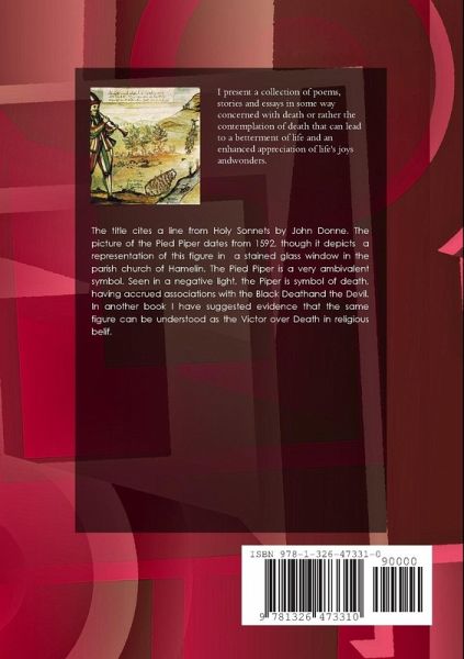 The title echoes a line in John Donne's Holy Sonnets. Donne, a man of profound but not unquestioning faith, could contemplate death with greater assurance than many in this secular and materialistic age, yet we can, indeed must, come to terms with death according to whatever attitude, creed or other persuasion we adhere to. The portrait of John Donne is in the public domain in the Google imahe" domain