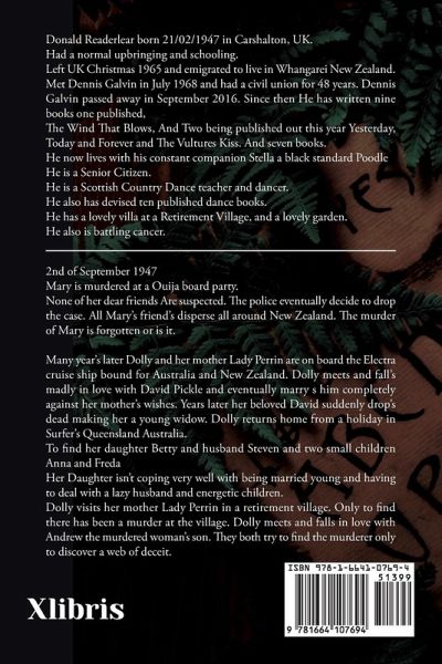 2nd of September 1947 Mary is murdered at a Ouija board party. None of her dear friends Are suspected. The police eventually decide to drop the case. All Mary's friend's disperse all around New Zealand. The murder of Mary is forgotten or is it. Many year's later Dolly and her mother Lady Perrin are on board the Electra cruise ship bound for Australia and New Zealand. Dolly meets and fall's madly in love with David Pickle and eventually marry s him completely against her mother's wishes. Years later her beloved David suddenly drop's dead making her a young widow. Dolly returns home from a holiday in Surfer's Queensland Australia. To find her daughter Betty and husband Steven and two small children Anna and Freda Her Daughter isn't coping very well with being married young and having to deal with a lazy husband and energetic children. Dolly visits her mother Lady Perrin in a retirement village. Only to find there has been a murder at the village. Dolly meets and falls in love with Andrew the murdered woman's son. They both try to find the murderer only to discover a web of deceit.