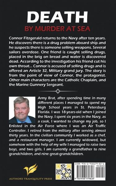 Connor Fitzgerald returns to the Navy after ten years. He discovers there is a drug problem aboard ship and he suspects there is someone selling weapons. Several sailors overdose. One friend is caught selling drugs, placed in the brig on bread and water is discovered dead. According to the investigation his friend cut his own throat... Connor is accused of selling drugs and is offered an Article 32, Military grand jury. The story is from the point of view of Connor, the protagonist. Other main characters are the Catholic Chaplain, and the Marine Gunnery Sergeant.