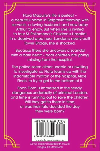 Flora Maguire's life is perfect - a beautiful home in Belgravia teeming with servants, a loving husband, and new baby Arthur to enjoy. But when she is invited to tour St. Philomena's Children's Hospital in a deprived area near London's newly-built Tower Bridge, she is shocked. Because there she uncovers a scandal with a dark heart - poor children are going missing from the hospital. The police seem either unable or unwilling to investigate, so Flora teams up with the indomitable matron of the hospital, Alice Finch, to try to get to the bottom of it. Soon Flora is immersed in the seedy, dangerous underbelly of criminal London, and time is running out to save the children. Will they get to them in time, or was their fate decided the day they were born... Previously published as The Forgotten Children. Readers love the Flora Maguire series: 'I thought it really evoked the era. And the atmosphere of an ocean-going cruise lent itself well to a murder scene. And you can quote me on that!' FAITH MARTIN. 'Wow! I was kept guessing right to the end. A great read and I will be looking out for more of this author's work!!!' 'I'm a big fan of this author's work, so I was excited to read the first instalment in her new mystery series. It did not disappoint. Along with the sparkling dialogue and likeable characters I have come to expect, I found an intriguing, page-turning whodunnit.' 'With intrigue heaped upon intrigue [this] is certainly a great whodunnit that kept my attention from start to finish.' 'This is definitely a 5 star! Highly recommended!' 'Pulls you in and won't let go!!!'