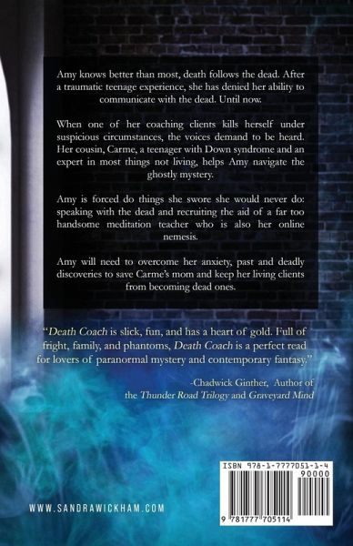 Amy knows better than most, death follows the dead. After a traumatic teenage experience, she has denied her ability to communicate with the dead. Until now. When one of her coaching clients kills herself under suspicious circumstances, the voices demand to be heard. Her cousin, Carme, a teenager with Down syndrome and an expert in most things not living, helps Amy navigate the ghostly mystery. Amy is forced do things she swore she would never do: speaking with the dead and recruiting the aid of a far too handsome meditation teacher who is also her online nemesis. Amy will need to overcome her anxiety, past and deadly discoveries to save Carme's mom and keep her living clients from becoming dead ones.
