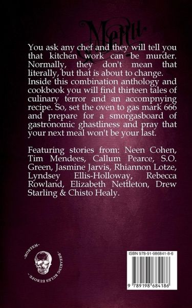 You ask any chef and they will tell you that kitchen work can be murder. Normally, they don't mean that literally, but that is about to change. Inside this combination anthology and cookbook, you will find thirteen tales of culinary terror and an accompanying recipe. So, set the oven to gas mark 666 and prepare for a smorgasbord of gastronomic ghastliness and pray that your next meal won't be your last. Featuring stories from Neen Cohen, Tim Mendees, Callum Pearce, S.O. Green, Jasmine Jarvis, Rhiannon Lotze, Lyndsey Ellis-Holloway, Rebecca Rowland, Elizabeth Nettleton, Drew Starling & Chisto Healy.