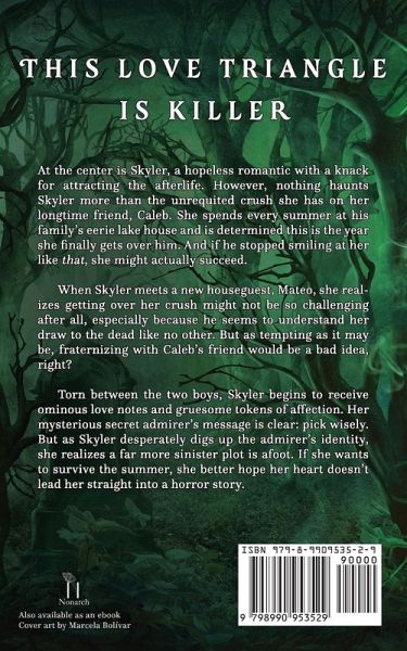 From the author of Liarland, a page-turning, paranormal, young adult horror-romance awaits! This love triangle is killer. Literally. At the center is Skyler, a hopeless romantic with a knack for attracting the afterlife. However, nothing haunts Skyler more than the unrequited crush she has on her longtime friend, Caleb. She spends every summer at his family's eerie lake house and is determined this is the year she finally gets over him. And if he stopped smiling at her like that, she might actually succeed. When Skyler meets a new houseguest, Mateo, she realizes getting over her crush might not be so challenging after all, especially because he seems to understand her draw to the dead like no other. But as tempting as it may be, fraternizing with Caleb's friend would be a bad idea, right? Torn between the two boys, Skyler begins to receive ominous love notes and gruesome tokens of affection. Her mysterious secret admirer's message is clear: pick wisely. But as Skyler desperately digs up the admirer's identity, she realizes a far more sinister plot is afoot. If she wants to survive the summer, she better hope her heart doesn't lead her straight into a horror story.