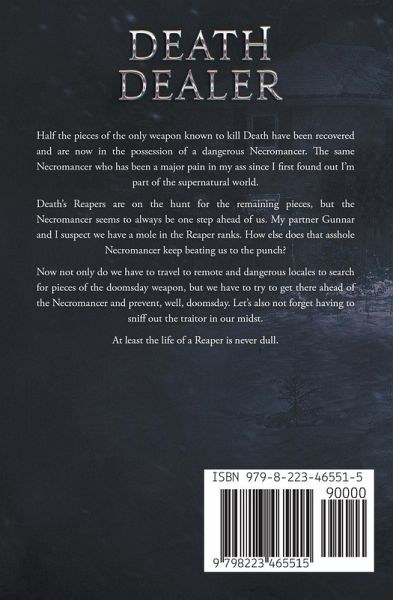Half the pieces of the only weapon known to kill Death have been recovered and are now in the possession of a dangerous Necromancer. The same Necromancer who has been a major pain in my ass since I first found out I'm part of the supernatural world. Death's Reapers are on the hunt for the remaining pieces, but the Necromancer seems to always be one step ahead of us. My partner Gunnar and I suspect we have a mole in the Reaper ranks. How else does that asshole Necromancer keep beating us to the punch? Now not only do we have to travel to remote and dangerous locales to search for pieces of the doomsday weapon, but we have to try to get there ahead of the Necromancer and prevent, well, doomsday. Let's also not forget having to sniff out the traitor in our midst. At least the life of a Reaper is never dull.
