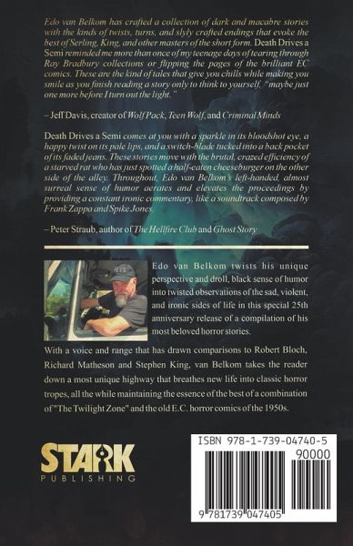 Keep one eye on the road ahead and another on the rearview mirror. Because, like the legendary phantom semi of this book's titular story, these stories will creep up on you and overtake you without warning. Edo van Belkom twists his unique perspective and droll, black sense of humor into twisted observations of the sad, violent, and ironic sides of life in this special 25th anniversary release of a compilation of his most beloved horror stories. With a voice and range that has drawn comparisons to Robert Bloch, Richard Matheson and Stephen King, van Belkom takes the reader down a most unique highway that breathes new life into classic horror tropes, all the while maintaining the essence of the best of a combination of "The Twilight Zone" and the old E.C. horror comics of the 1950s.