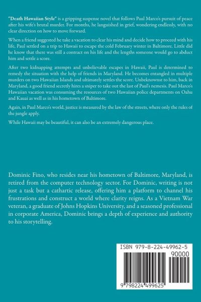 "Death Hawaiian Style" is a gripping suspense novel that follows Paul Marco's pursuit of peace after his wife's brutal murder. For months, he languished in grief, wondering endlessly, with no clear direction on how to move forward. When a friend suggested he take a vacation to clear his mind and decide how to proceed with his life, Paul settled on a trip to Hawaii to escape the cold February winter in Baltimore. Little did he know that there was still a contract on his life and the lengths someone would go to abduct him and settle a score. After two kidnapping attempts and unbelievable escapes…mehr