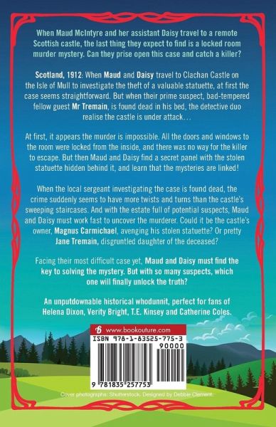 When Maud McIntyre and her assistant Daisy travel to a remote Scottish castle, the last thing they expect to find is a locked room murder mystery. Can they prise open this case and catch a killer? Scotland, 1912: When Maud and Daisy travel to Clachan Castle on the Isle of Mull to investigate the theft of a valuable statuette, at first the case seems straightforward. But when their prime suspect, bad-tempered fellow guest Mr Tremain, is found dead in his bed, the detective duo realise the castle is under attack... At first, it appears the murder is impossible. All the doors and windows to the room were locked from the inside, and there was no way for the killer to escape. But then Maud and Daisy find a secret panel with the stolen statuette hidden behind it, and learn that the mysteries are linked! When the local sergeant investigating the case is found dead, the crime suddenly seems to have more twists and turns than the castle's sweeping staircases. And with the estate full of potential suspects, Maud and Daisy must work fast to uncover the murderer. Could it be the castle's owner, Magnus Carmichael, avenging his stolen statuette? Or pretty Jane Tremain, disgruntled daughter of the deceased? Facing their most difficult case yet, Maud and Daisy must find the key to solving the mystery. But with so many suspects, which one will finally unlock the truth? An unputdownable historical whodunnit, perfect for fans of Helena Dixon, Verity Bright, T.E. Kinsey and Catherine Coles. Readers are enjoying Death in a Scottish Castle: "The best cozy crime I have read in a long time... Sparkling." NetGalley reviewer ¿¿¿¿¿ "I adore this series!" Shelfaware_ia ¿¿¿¿¿ "Brilliant... Kept me guessing to the end." Goodreads reviewer