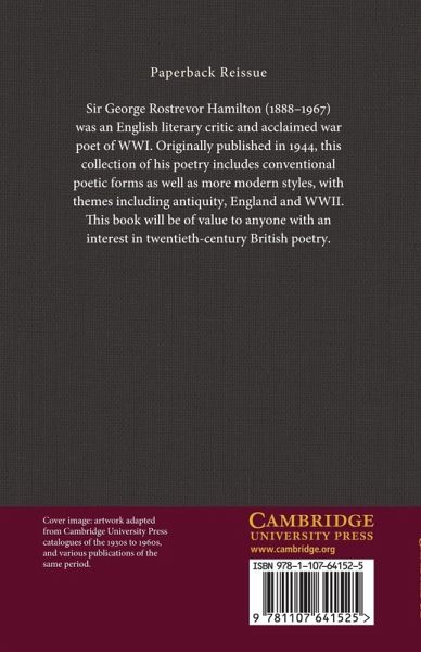 Sir George Rostrevor Hamilton (1888-1967) was an English literary critic and acclaimed war poet of WWI. Originally published in 1944, this collection of his poetry includes conventional poetic forms as well as more modern styles, with themes including antiquity, England and WWII. This book will be of value to anyone with an interest in twentieth-century British poetry.