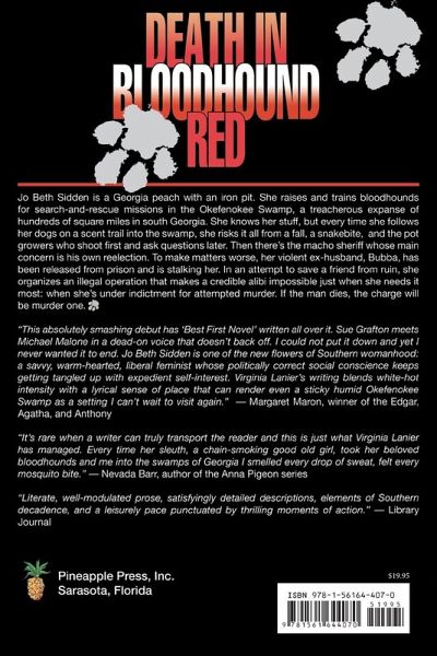 Jo Beth Sidden raises and trains bloodhounds for search-and-rescue missions in the Okeefenokee Swamp. She is used to dealing with lost kids, prison escapes, snakes, bugs, macho deputies, and her abusive ex-husband. But now she is suspected of murder and has to choose between betraying a friend and proving her innocence. The mysterious will of her late father, a famous artist, adds to the web of deceit and betrayal that Jo Beth must unravel to save her livelihood and her life.
