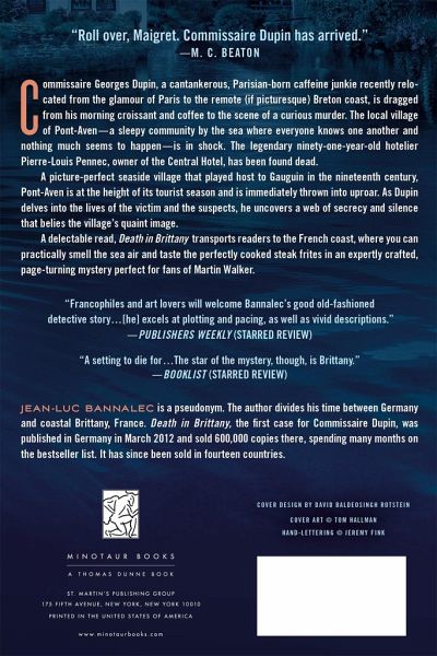 "Roll over, Maigret. Commissaire Dupin has arrived."-M.C. Beaton Commissaire Georges Dupin, a cantankerous, Parisian-born caffeine junkie recently relocated from the glamour of Paris to the remote (if picturesque) Breton coast, is dragged from his morning croissant and coffee to the scene of a curious murder. The local village of Pont-Aven-a sleepy community by the sea where everyone knows one other and nothing much seems to happen-is in shock. The legendary ninety-one-year-old hotelier Pierre-Louis Pennec, owner of the Central Hotel, has been found dead. A picture-perfect seaside village that played host to Gaugin in the nineteenth century, Pont-Aven is at the height of its tourist season and is immediately thrown into uproar. As Dupin delves into the lives of the victim and the suspects, he uncovers a web of secrecy and silence that belies the village's quaint image. A delectable read, Jean-Luc Bannalec's Death in Brittany transports readers to the French coast, where you can practically smell the sea air and taste the perfectly cooked steak frites in an expertly crafted, page-turning mystery for fans of Martin Walker.