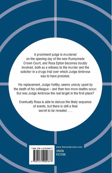 A prominent judge is murdered on the opening day of the new Runnymede Crown Court, and Rosa Epton become doubly involved, both as a witness to the murder and the solicitor in a drugs trial over which Judge Ambrose was to have presided. His replacement, Judge Holtby, seems unduly upset by the death of his colleague - and then two more deaths occur. But was Judge Ambrose the real target in the first place? And what involvement does Rosa's client in the drugs case have in the whole business? Eventually Rosa is able to deduce the likely sequence of events, but there is still a final secret to be revealed ...