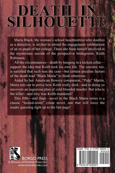 Maria Black, the woman's school headmistress who doubles as a detective, is invited to attend the engagement celebrations of an ex-pupil of her college. There she finds herself involved in the mysterious suicide of the prospective bridegroom, Keith Robinson. All the circumstances--death by hanging in a locked cellar--support the idea that Keith took his own life. The coroner, too, is satisfied that such was the case--but certain peculiar factors of the death lead "Black Maria" to think otherwise. Aided by her American Bowery companion, "Pulp" Martin, Maria sets out to prove how Keith really died--and in doing so uncovers an ingenious plan of cold-blooded murder. But who is the killer--and why was Keith murdered? This fifth--and final--novel in the Black Maria series is a classic "locked-room" crime novel, one that will leave the reader guessing right up to the last page!