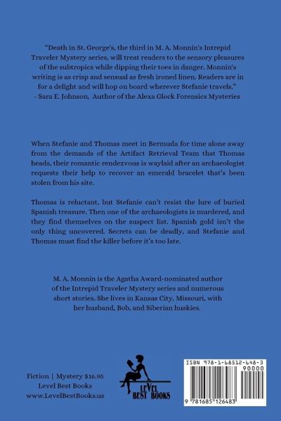 M. A. Monnin has been a traveler all her life, living in West Germany, The Netherlands, Spain, and England. An avocational archaeologist, she attributes her fascination with archaeology to her childhood in Germany, where she visited medieval churches, castles, and villages. Her short stories have appeared in anthologies and Black Cat Mystery Magazine, and her nonfiction articles cover Victorian reception of Ancient Egypt, detective fiction, and gardening. A board member of the Midwest Chapter of MWA, Mary is also a member of ITW, SinC, SMFS, and RWA and is a trustee of the Kansas City Archaeological Society. She divides her time between writing, traveling, and hiking. She lives in Kansas City, Missouri with husband Bob and Siberian huskies Anubis and Nikita.