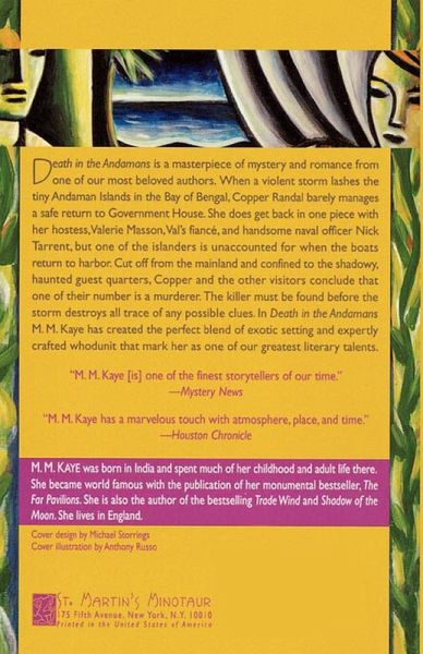 Death in the Andamans is a masterpiece of mystery and romance from one of our most beloved authors. When a violent storm lashes the tiny Andaman Islands in the Bay of Bengal, Copper Randal barely manages a safe return to Government House. She does get back in one piece with her hostess, Valerie Masson, Val's fiance, and handsome naval officer Nick Tarrent, but one of the islanders is unaccounted for when the boats return to harbor. Cut off from the mainland and confined to the shadowy, haunted guest quarters, Copper and the other visitors conclude that one of their number is a murderer. The killer must be found before the storm destroys all trace of any possible clues. In Death in the Andamans M.M. Kaye has created the perfect blend of exotic setting and expertly crafted whodunit that mark her as one of our greatest literary talents.
