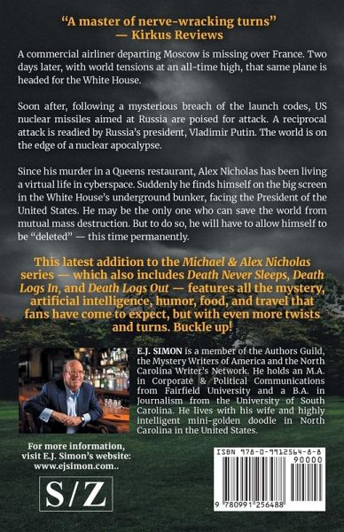A commercial airliner departing Moscow is missing over France. Two days later, with world tensions at an all-time high, that same plane is headed for the White House. Soon after, following a mysterious breach of the launch codes, US nuclear missiles aimed at Russia are poised for attack. A reciprocal attack is readied by Russia's president, Vladimir Putin. The world is on the edge of a nuclear apocalypse. Since his murder in a Queens restaurant, Alex Nicholas has been living a virtual life in cyberspace. Suddenly he finds himself on the big screen in the White House's underground bunker, facing the President of the United States. He may be the only one who can save the world from mutual mass destruction. But to do so, he will have to allow himself to be "deleted" - this time permanently. This latest addition to the Michael & Alex Nicholas series - which also includes Death Never Sleeps, Death Logs In, and Death Logs Out - features all the mystery, artificial intelligence, humor, food, and travel that fans have come to expect, but with even more twists and turns. Buckle up!