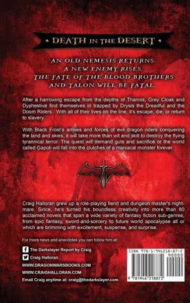 An old nemesis returns. A new enemy rises. The fate of the Blood Brothers and Talon will be fatal. After a harrowing escape from the depths of Thannis, Grey Cloak and Dyphestive find themselves in trapped by Drysis the Dreadful and the Doom Riders. With all of their lives on the line, it's escape, die, or return to slavery. With Black Frost's armies and forces of evil dragon riders conquering the land and skies, it will take more than wit and skill to destroy the flying tyrannical terror. The quest will demand guts and sacrifice or the world called Gapoli will fall into the clutches of a maniacal monster forever. If you enjoy epic fantasy, filled with the gamut of elves, dwarves, halflings and orcs, along with mages, thieves and warriors to dragon riders, then you will devour the mysterious and brazen adventures of Grey Cloak and Dyphestive.