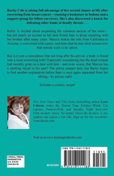 Rarity Cole is taking full advantage of her second chance at life after recovering from breast cancer—running a bookstore in Sedona and a support group for fellow survivors. She’s also discovered a knack for defeating other kinds of deadly threats . . . Rarity is excited about expanding the romance section of her store—but not nearly as excited as her best friend Sam is about reuniting with her brother after many years. Marcus makes the trek from California to Arizona, is welcomed with a party, and hints that he may stick around now that remote work is an option. But is it just a coincidence that not long after his arrival, a body is found near a local swimming hole? Especially considering that the dead woman had recently gone on a date with him—and even worse, that Marcus has a startling secret in his past? The police suspect him, but Rarity hopes to find another explanation before Sam is once again separated from her sibling—by prison walls . . .