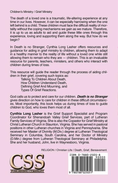 The death of a loved one is a traumatic, life-altering experience at any time in our lives. However, it can be especially harrowing when the one left behind is a child. These children must face the difficult reality of mortality without the coping mechanisms we gain as we mature. Therefore, it is up to us as adults to aid and guide these little ones through this experience, loving and supporting them along the way. But how do we begin? Death Is No Stranger, Cynthia Long Lasher offers resources and guidance for aiding in grief ministry to children, allowing them to adapt in a healthy manner to the reality of life without a loved one while still allowing them to remain what they are -- children. This is an invaluable resource for parents, teachers, ministers, and others who interact with children during times of loss. This resource will guide the reader through the process of aiding children in their grief, covering such topics as: Talking To Children About Death How Children Understand Death Defining Grief and Mourning, and Types of Grief Reactions God calls us to protect and care for our children. Death Is No Stranger gives direction on how to care for children in these difficult circumstances. Most importantly, this book helps us during times of loss to guide children to God, who loves them most of all. Cynthia Long Lasher is the Grief Support Specialist and Program Coordinator for Shenandoah Valley Grief Services, part of Lutheran Family Services of Virginia. She is also the copastor for Grief Ministry at Christ Lutheran Church in Staunton, Virginia. She has served in pastoral positions in other Lutheran churches in Virginia and Pennsylvania. She received her Master of Divinity (M.Div.) degree at Lutheran Theological Seminary in Columbia, South Carolina, and her Doctor of Ministry (D.Min.) degree from Lutheran Theological Seminary at Philadelphia. She and her husband, John, live in Waynesboro, Virginia.