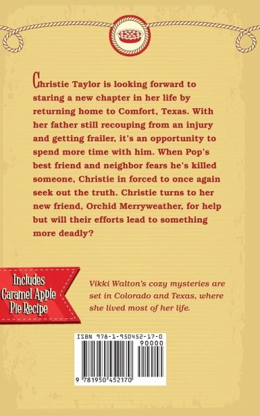 After much soul-searching, Christie quits her job and moves home to Comfort, Texas. Her cantankerous father is still battling with developers. Christie's also worried about her father's deteriorating health and mental capacity. Her decision to return home puts her in direct conflict with the Webster Group-developers who don't want to take no for an answer. Then tragedy strikes when R.C. Taylor's friend, Curtis Altgelt, finds a dead body on his property. Did Curtis kill the man? Was it an accident? Christie knows she needs to get into the mind of a killer, but will her decision prove lethal? Pie Recipe included: Caramel Apple