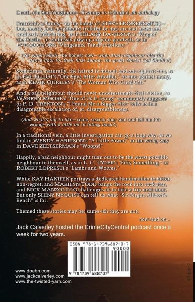 For those who find revenge sweet, this quirky collection will satisfy your predilections - Steve Steinbeck / The Jury Box in Ellery Queen Mystery Magazine Jan/Feb 2023 (****) 15 all-new stories From both new and established, award-winning and best-selling authors Kenzie complains about cats to the wrong neighbor Mitch chooses the wrong couple to spy on next door But does Sheila target the right man to scam? Prepare for murder in many guises... Visit a world where the intolerable few, who create hell for the rest, get their comeuppance. Short stories of murder, mystery, and revenge from Hilary Davidson, Steve Hockensmith, L. C. Tyler, Marilyn Todd, Dave Zeltserman, Warren Moore, Robert Lopresti, Nick Manzolillo, Kevin Quigley, Eve Elliot, Eve Morton, Kay Hanifen, Wendy Harrison, Shiny Nyquist, and F. D. Trenton. with titles such as: ONE OF US IS DYING Ellen is to all intents and purposes housebound when she is forcibly deprived of the only joy she has in life, and decides to act. VENGEANCE TAKES A HOLIDAY Sheila is always scrounging for food, but it's not just because she's pregnant. WOOPS! Mitch knows the new couple next door are bad news and he's going to do something about them. But when they knock on his door first, what have they got in store for him? LAMBS AND WOLVES When Garmo observes his next door neighbor being stalked, he is part right but dangerously wrong. Read also about "The Woman Who Cried Cat," "King of the Castle," "A little Power," "Murder, She Chiselled," and more... Find your own personal crime hit in a great anthology!