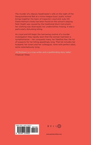 The murder of a deputy headmaster's wife on the night of the Sesquicentennial Ball at a minor-league boys' public school brings together the team of Inspector Lloyd and Judy Hill. Diana Hamlyn's body has been found on the school's playing field. Death had been caused by the traditional blunt instrument, her clothing was disarrayed, her underclothes missing. It was a particularly disturbing killing. As Lloyd and Hill begin the harrowing routine of a murder investigation they rapidly learn that the woman had been a nymphomaniac - her conquests many, her fidelities few, the list of suspects for her killing appallingly long. That list includes her husband, her lovers and her colleagues, none with perfect alibis, some ostentatiously lying. It is an old-fashioned puzzle peopled with very contemporary characters. Once again Jill McGown presents a true novel of detection.
