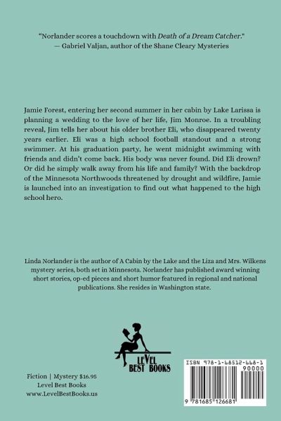 Jamie Forest, entering her second summer in her cabin by Lake Larissa, is planning a wedding to the love of her life, Jim Monroe. In a troubling reveal, Jim tells her about his older brother Eli, who disappeared twenty years earlier. Eli was a high school football standout and a strong swimmer. At his his graduation party, he went midnight swimming with friends and didn't come back. His body was never found. Did he drown? Or did he simply walk away from his life and family? With the backdrop of the Minnesota Northwoods threatened by drought and wildfire, Jamie is launched into an investigation to find out what happened to the high school hero.