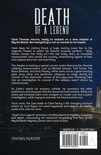 Clark Thomas takes a friend to Legends Theater. When a performer collapses on stage, rumors of foul play emerge. As he investigates the impersonators, rivalries surface. With danger rising, Clark uncovers the truth before another legend falls.
