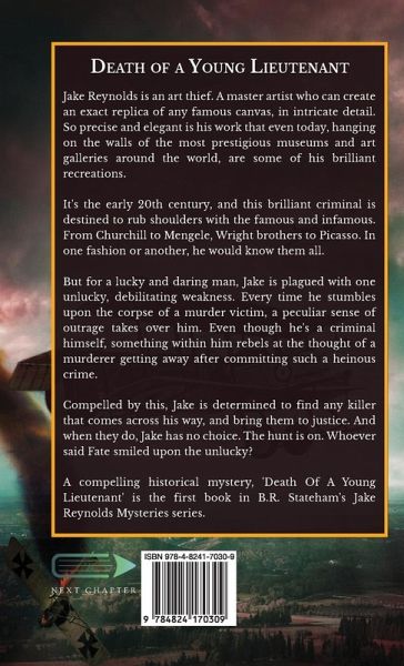 Jake Reynolds is an art thief. A master artist who can create an exact replica of any famous canvas, in intricate detail. So precise and elegant is his work that even today, hanging on the walls of the most prestigious museums and art galleries around the world, are some of his brilliant recreations. It's the early 20th century, and this brilliant criminal is destined to rub shoulders with the famous and infamous. From Churchill to Mengele, Wright brothers to Picasso. In one fashion or another, he would know them all. But for a lucky and daring man, Jake is plagued with one unlucky, debilitating weakness. Every time he stumbles upon the corpse of a murder victim, a peculiar sense of outrage takes over him. Even though he's a criminal himself, something within him rebels at the thought of a murderer getting away after committing such a heinous crime. Compelled by this, Jake is determined to find any killer that comes across his way, and bring them to justice. And when they do, Jake has no choice. The hunt is on. Whoever said Fate smiled upon the unlucky? A compelling historical mystery, 'Death Of A Young Lieutenant' is the first book in B.R. Stateham's Jake Reynolds Mysteries series.