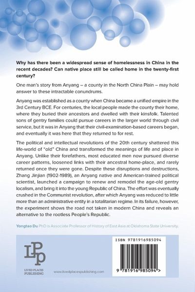 Why has there been a widespread sense of homelessness in China in the recent decades? Can native place still be called home in the twenty-first century? One man's story from Anyang - a county in the North China Plain - may hold answer to these intractable conundrums. Anyang was established as a county when China became a unified empire in the 3rd Century BCE. For centuries, the local people made the county their home, where they buried their ancestors and dwelled with their kinsfolk. Talented sons of gentry families could pursue careers in the larger world through civil service, but it was in Anyang that their civil-examination-based careers began, and eventually it was here that they returned to for rest. The political and intellectual revolutions of the 20th century shattered this life-world of "old" China and transformed the meanings of life and place in Anyang. Unlike their forefathers, most educated men now pursued diverse career patterns, loosened links with their ancestral home-place, and rarely returned once they were gone. Despite these disruptions and destructions, Zhang Jinjian (1902-1989), an Anyang native and American-trained political scientist, launched a campaign to renew and remodel the age-old gentry localism, and bring it into the young Republic of China. The effort was eventually crushed in the Communist revolution, after which Anyang was reduced to little more than an administrative entity in a totalitarian regime. In its failure, however, the experiment shows the road not taken in modern China and reveals an alternative to the rootless People's Republic.