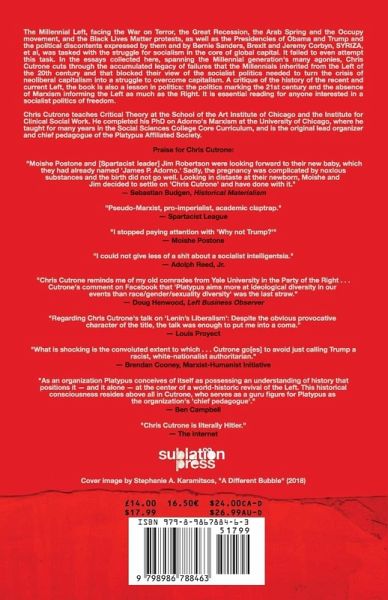 The Millennial Left, facing the War on Terror, the Great Recession, the Arab Spring and the Occupy movement, and the Black Lives Matter protests, as well as the Presidencies of Obama and Trump and the political discontents expressed by them and by Bernie Sanders, Brexit and Jeremy Corbyn, SYRIZA, et al, was tasked with the struggle for socialism in the core of global capital. It failed to even attempt this task. In the essays collected here, spanning the Millennial generation's many agonies, Chris Cutrone cuts through the accumulated legacy of failures that the Millennials inherited from the Left of the 20th century and that blocked their view of the socialist politics needed to turn the crisis of neoliberal capitalism into a struggle to overcome capitalism. A critique of the history of the recent and current Left, the book is also a lesson in politics: the politics marking the 21st century and the absence of Marxism informing the Left as much as the Right. It is essential reading for anybody interested in a socialist politics of freedom.