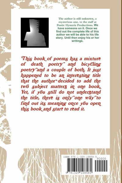 A poetry collection consisting of two subject matters. One is death, the other is bicycling. The author combined the two for this book because the interesting title. It even prompt the author to write a poem titled 'The Grim Reaper on a Bicycle', which is included in this book.