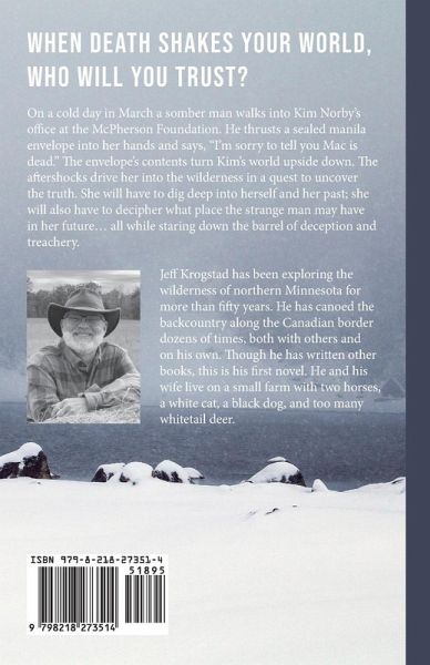 When death shakes your world, who will you trust? On a cold day in March a somber man walks into Kim Norby's office at the McPherson Foundation. He thrusts a sealed manila envelope into her hands and says, "I'm sorry to tell you Mac is dead." The envelope's contents turn Kim's world upside down. The aftershocks drive her into the wilderness in a quest to uncover the truth. She will have to dig deep into herself and her past; she will also have to decipher what place the strange man may have in her future... all while staring down the barrel of deception and treachery.