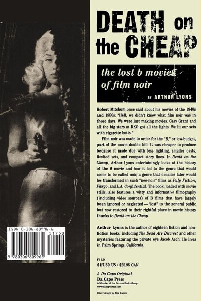 Arthur Lyons entertainingly looks at the history of the B movie and how it led to the genre that would come to be called noir. The book, loaded with 40 movie stills, also features a witty and informative filmography (including video sources) of B films that have largely been ignored or neglected--"lost" to the general public but now restored to their rightful place in movie history thanks to "Death on the Cheap".