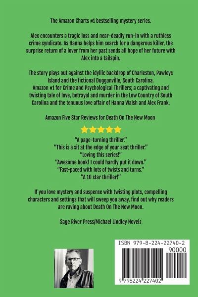 Charleston detective Alex Frank encounters a tragic loss and near-deadly run-in with a ruthless crime syndicate. As attorney Hanna Walsh helps him search for a dangerous killer, the surprise return of a lover from her past sends all hope of her future with Alex into a tailspin. The story plays out against the idyllic backdrop of Charleston, Pawleys Island and the fictional Dugganville, South Carolina. Amazon #1 for Crime and Psychological Thrillers; a captivating and twisting tale of love, betrayal and murder in the Low Country of South Carolina and the tenuous love affair of Hanna Walsh and Alex Frank. Amazon Five Star Reviews for Death On The New Moon ¿¿¿¿¿ "A page-turning thriller." "This is a sit at the edge of your seat thriller." "Loving this series!" "Awesome book! I could hardly put it down." "Fast-paced with lots of twists and turns." "A 10 star thriller!" If you love mystery and suspense with twisting plots, compelling characters and settings that will sweep you away, find out why readers are raving about Death On The New Moon.