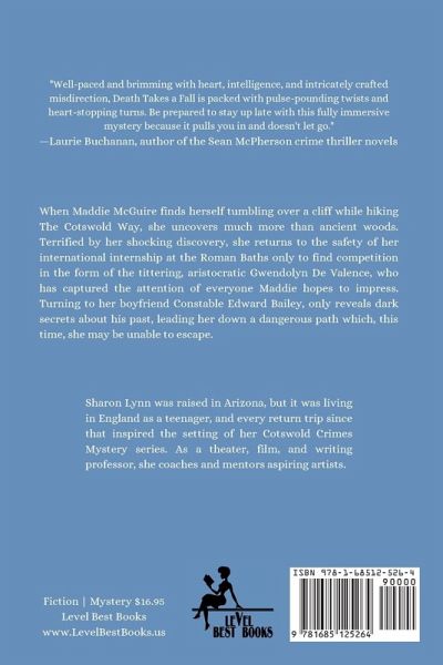 When Maddie McGuire finds herself tumbling over a cliff while hiking The Cotswold Way, she uncovers much more than ancient woods. Terrified by her shocking discovery, she returns to the safety of her international internship at the Roman Baths only to find competition in the form of the tittering, aristocratic Gwendolyn De Valence, who has captured the attention of everyone Maddie hopes to impress. Turning to her boyfriend Constable Edward Bailey, only reveals dark secrets about his past, leading her down a dangerous path which, this time, she may be unable to escape.