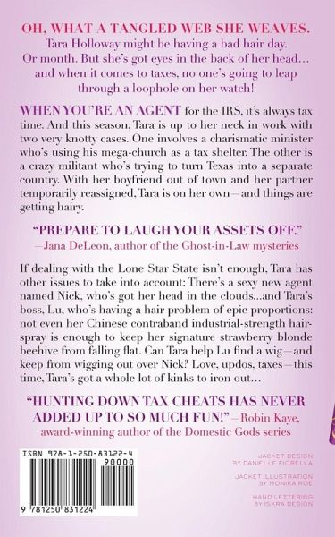 When you're an agent for the IRS, it's always tax time. And this season, Tara Holloway is up to her neck in work with two very knotty cases. One involves a charismatic minister who's using his mega-church as a tax shelter. The other is a crazy militant who's trying to turn Texas into a separate country. With her boyfriend out of town and her partner reassigned, Tara is on her own-and things are getting hairy. If dealing with the Lone Star State isn't enough, Tara has other new issues to take into account: There's a sexy new agent named Nick, who's got her head in the clouds...and Tara's boss, Lu, who's having a hair problem of epic proportions: not even her Chinese contraband industrial-strength hairspray is enough to keep her signature strawberry blonde beehive from falling flat. Can Tara help Lu find a wig-and keep from wigging out over Nick? Love, updos, taxes-this time, Tara's got a whole lot of kinks to iron out...