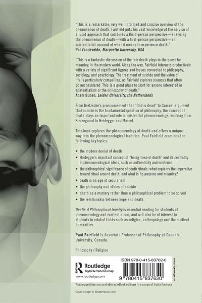 "This is a fantastic discussion of the role death plays in the quest for meaning in the modern world. Along the way, Fairfield interacts productively with a variety of significant figures and issues connected to philosophy, sociology, and psychology. The treatment of suicide and the value of life is particularly compelling, as Fairfield explores nuances that often go unconsidered. This is a great place to start for anyone interested in existentialism or the philosophy of death." - Adam Buben, Leiden University, The Netherlands