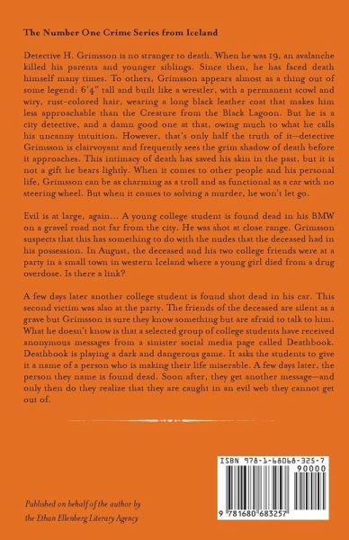 Detective H. Grímsson is no stranger to death. When he was 19, an avalanche killed his parents and younger siblings. Since then, he has faced death himself many times. To others, Grímsson appears almost as a thing out of some legend: 6'4" tall and built like a wrestler, with a permanent scowl and wiry, rust-colored hair, wearing a long black leather coat that makes him less approachable than the Creature from the Black Lagoon. But he is a city detective, and a damn good one at that, owing much to what he calls his uncanny intuition. However, that's only half the truth of it-detective Grímsson is clairvoyant and frequently sees the grim shadow of death before it approaches. This intimacy of death has saved his skin in the past, but it is not a gift he bears lightly. When it comes to other people and his personal life, Grímsson can be as charming as a troll and as functional as a car with no steering wheel. But when it comes to solving a murder, he won't let go... Evil is at large, again... A young college student is found dead in his BMW on a gravel road not far from the city. He was shot at close range. Grímsson suspects that this has something to do with the nudes that the deceased had in his possession. In August, the deceased and his two college friends were at a party in a small town in western Iceland where a young girl died from a drug overdose. Is there a link? A few days later another college student is found shot dead in his car. This second victim was also at the party. The friends of the deceased are silent as a grave but Grímsson is sure they know something but are afraid to talk to him. What he doesn't know is that a selected group of college students have received anonymous messages from a sinister social media page called Deathbook. Deathbook is playing a dark and dangerous game. It asks the students to give it a name of a person who is making their life miserable. A few days later, the person they name is found dead. Soon after, they get another message-and only then do they realize that they are caught in an evil web they cannot get out of...