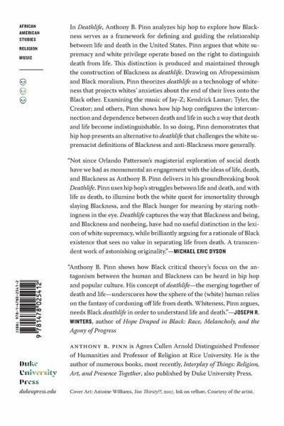 In Deathlife, Anthony B. Pinn analyzes hip hop to explore how Blackness serves as a framework for defining and guiding the relationship between life and death in the United States. Pinn argues that white supremacy and white privilege operate based on the right to distinguish death from life. This distinction is produced and maintained through the construction of Blackness as deathlife. Drawing on Afropessimism and Black moralism, Pinn theorizes deathlife as a technology of whiteness that projects whites' anxieties about the end of their lives onto the Black other. Examining the music of Jay-Z; Kendrick Lamar; Tyler, the Creator; and others, Pinn shows how hip hop configures the interconnection and dependence between death and life in such a way that death and life become indistinguishable. In so doing, Pinn demonstrates that hip hop presents an alternative to deathlife that challenges the white supremacist definitions of Blackness and anti-Blackness more generally.