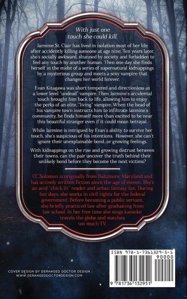 With just one touch she could kill. Jazmine St. Clair has lived in isolation most of her life after accidently killing someone at age nine. Ten years later, she's socially awkward, shunned by society and forbidden to feel any touch by another human. Then one day she finds herself in the midst of a series of supernatural kidnappings by a mysterious group and meets a sexy vampire that changes her world forever. Evan Kitagawa was short-tempered and directionless as a lower level "undead" vampire. Then Jazmine's accidental touch brought him back to life, allowing him to enjoy the perks of an elite, "living" vampire. When the head of his vampire town instructs him to infiltrate Jazmine's community, he finds himself more than excited to be near this beautiful stranger even if it could mean betrayal. While Jazmine is intrigued by Evan's ability to survive her touch, she's suspicious of his intentions. However, she can't ignore their unexplainable bond...or growing feelings. With kidnappings on the rise and growing distrust between their towns, can the pair uncover the truth behind their unlikely bond before they become the next victims? Fans of Warm Bodies, Vampire Diaries and the manga My Little Monster will enjoy this new adult paranormal romance filled with mystery, heart and action. Pick up Deathly Touch, part of the Paranormal World universe, today!