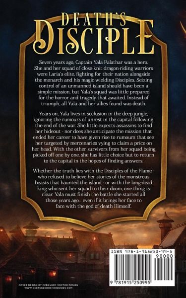 Seven years ago, Captain Yala Palathar was a hero. She and her squad of close-knit dragon-riding warriors were Laria's elite, fighting for their nation alongside the monarch and his magic-wielding Disciples. Seizing control of an unmanned island should have been a simple mission, but Yala's squad was little prepared for the horror and tragedy that awaited. Instead of triumph, all Yala and her allies found was death. Years on, Yala lives in seclusion in the deep jungle, ignoring the rumours of unrest in the capital following the end of the war. She little expects assassins to find her hideout - nor does she anticipate the mission that ended her career to have given rise to rumours that see her targeted by mercenaries vying to claim a price on her head. With the other survivors from her squad being picked off one by one, she has little choice but to return to the capital in the hopes of finding answers. Whether the truth lies with the Disciples of the Flame - who refused to believe her stories of the monstrous beasts that haunted the island - or with the long-dead king who sent her squad to their doom, one thing is clear. Yala must finish the battle she started all those years ago... even if it brings her face to face with the god of death Himself.