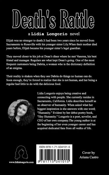 Elijah was no stranger to death. It had been two years since he moved from Sacramento to Roseville with his younger sister Lily. When their mother died years before, Elijah became his younger sister's legal guardian. They moved closer to his job at Dean's diner where he met Vanessa, his best friend and manager. ¿ Regulars are what kept Dean's going. One of the most frequent customers being Dabria, a woman who is the dictionary definition of an enigma. Their reality is shaken when they see Dabria do things no human can do. Soon enough, they're forced to realize that she is not human, and her being a regular had little to do with the delicious food.