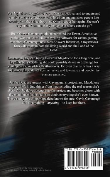 As Magdalene struggles to accept Omar's betrayal and to understand a universe that rewards assholes like Stan and punishes people like Morris, the other shoe drops and Omar betrays her again. She can't stay in the Commune any longer. But where can she go? Enter Gavin Cavanaugh, the man behind the Tower. A reclusive genius who made his billions writing software for casino gaming machines, Cavanaugh now runs Answers Industries, a mysterious firm with roots in both the living world and the Land of the Dead. Cavanaugh has been trying to recruit Magdalene for a long time, and he offers her everything she could possibly desire in exchange for signing on as one of his Deathwalkers. He even claims he has a way to balance the scales of cosmic justice and to ensure evil people like Stan are punished. But the Dead are uneasy with Cavanaugh's project, and Magdalene suspects he's hiding things from her, including the real reason she's there. As she delves deeper into the project and becomes closer with the man himself, she begins to doubt everything she's ever known. There's only one thing Magdalene knows for sure: Gavin Cavanaugh will do anything-anything-to keep her there.