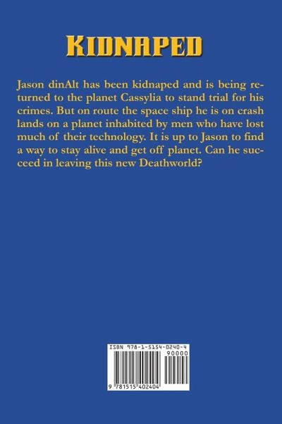 Jason dinAlt has been kidnaped and is being returned to the planet Cassylia to stand trial for his crimes. But on route the space ship he is on crash lands on a planet inhabited by men who have lost much of their technology. It is up to Jason to find a way to stay alive and get off planet. Can he succeed in leaving this new Deathworld?