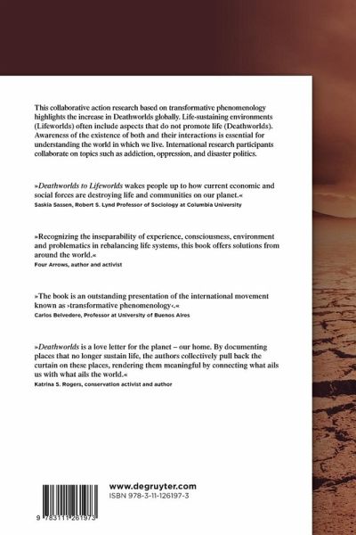 Deathworlds are places on planet earth that can no longer sustain life. These are increasing rapidly. We experience remnants of Deathworlds within our Lifeworlds (for example traumatic echoes of war, genocide, oppression). Many practices and policies, directly or indirectly, are "Deathworld-Making." They undermine Lifeworlds contributing to community decline, illnesses, climate change, and species extinction. This book highlights the ways in which writing about and sharing meaningful experiences may lead to social and environmental justice practices, decreasing Deathworld-Making. Phenomenology…mehr