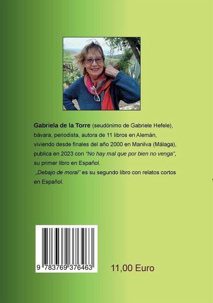 "Debajo del Moral" es el segundo libro en Castellano de Gabriela de la Torre. Es un testimonio literario de la capacidad de Gabriela de la Torre para unir lo tradicional y lo moderno en una danza narrativa que se burla de las convenciones y celebra la diversidad de voces que componen nuestra realidad, creando relatos que son tanto humorísticos como profundamente reflexivos. Texto que despliega una increíble diversidad de registros y tonalidades: desde las tradiciones populares andaluzas, cargadas de refranes y sabiduría ancestral, hasta un humor mordaz y una mirada crítica sobre los desafíos contemporáneos, como la incursión de la inteligencia artificial en la gestión empresarial. Sin duda, este libro refleja la calidad literaria de una escritora con un talento único, capaz de atrapar al lector en su mundo y mantenerlo cautivo hasta la última palabra. Nuria Ruíz Fernández, lectora y tutora