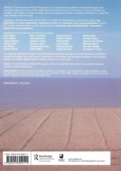 This textbook reflects the buoyant state of contemporary political philosophy, and the development of the subject in the past two decades. It includes seminal papers on fundamental philosophical issues such as: the nature of social explanation distributive justice liberalism and communitarianism citizenship and multiculturalism nationalism democracy criminal justice. A range of views is represented, demonstrating the richness of the philosophical contribution to some of the most contested areas of public policy and political decision making. Each section has an introduction by the editors that situates the papers in the ongoing debate. Further Reading sections feature at the end of each chapter. Readings from the following thinkers are included: Steven Lukes, Robert Nozick, John Rawls, Bhikhu Parekh, Antony Duff, G.A. Cohen, Derek Parfit, Roger Scruton, Michael Sandel, Alasdair MacIntrye. Debates in Contemporary Political Philosophy will be a valuable resource for upper-level students interested in current thinking in this area.