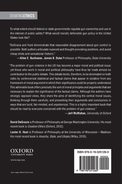 Introduction Part I By Lester Hunt 1. What is the Issue of Gun Control About? 2. Arguments Based on Rights and Arguments Based on Facts 3. Self-Defense: A Right that Deserves Special Protection 4. Option-Rights and Means-Rights 5. Taking a Principled Position 6. The Ethics and Jurisprudence of Risk 7. Philosophizing about Empirical Studies 8. Policy Implications Part II By David DeGrazia 9. Introduction to Part II 10. Law, Ethics, and Responsible Public Policy 11. Critique of Appeals to Self-Defense and Physical Security 12. Critique of Appeals to Liberty Rights 13. The Consequentialist Case for Gun Control 14. The Rights-Based Case for Gun Control 15. Gun Politics in the United States 16. Policy Recommendations